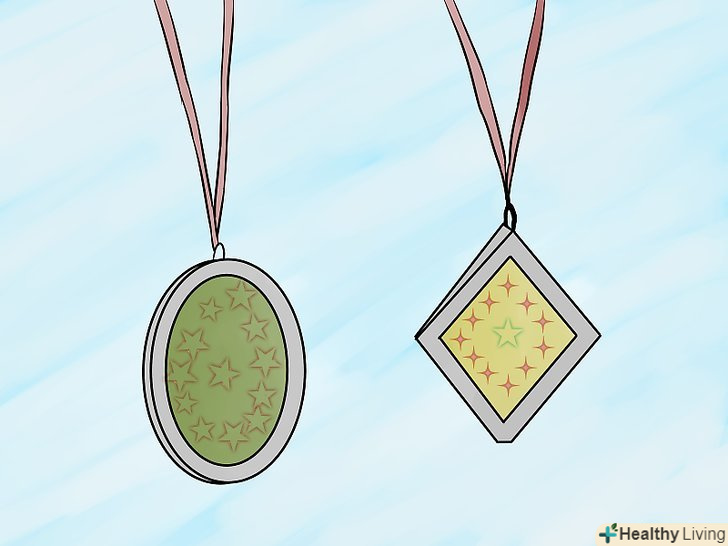 Рамки з декоративними клаптями або вишивкою. дешеві рамочки, особливо металеві, можуть надати шику вашої ялинці. Купіть кілька дрібних рамочок і підберіть шматочки тканини, щоб в них вставити: наприклад, клапті з новорічними мотивами або в шотландську клітку, фрагменти в'язаного полотна, міні-вишивки або шматочки вінтажних мережив. Вийміть з рамки картонну підкладку і натягніть на неї тканину. Зафіксуйте тканину кількома міцними стібками або гарячим клеєм. Приклейте до рамки петлю зі стрічки і повісьте на ялинку.- Якщо у вас є звичайна біла тканина і маркери, ви також можете натягнути тканину і разом з дітьми розписати її малюнками або написами.