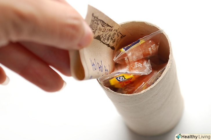 Зберіть все, що вам знадобиться. ви можете переглянути повний список в розділі що вам знадобиться. Підійде все, що поміститься в трубку: цукерки для дітей або прикраса для коханої людини.- Зробіть її особливою. напишіть на красивому листку паперу особисте привітання. Ось кілька ідей: