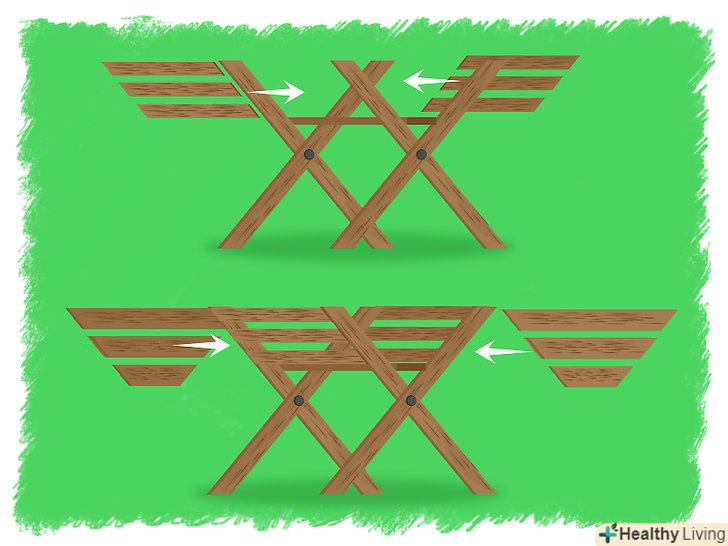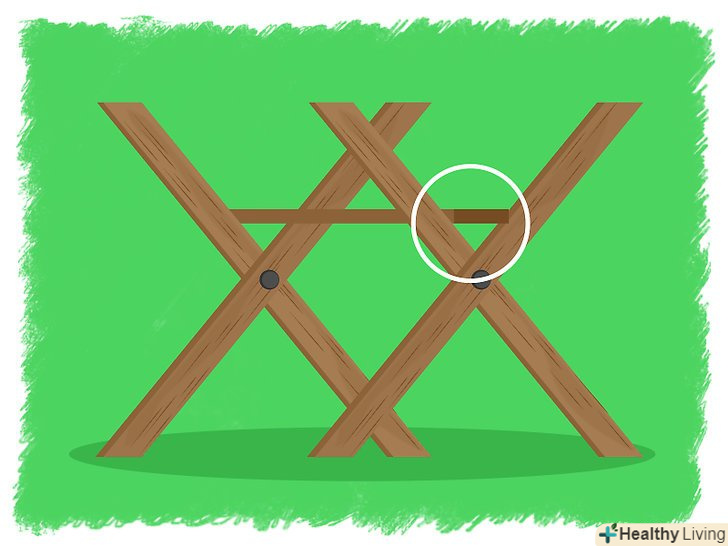 - Зберіть ніжки, складаючи їх так, щоб вони перетиналися один з одним в центрі і формували букву "Х". Закрутіть болти в отвір, скріплюючи ніжки разом. Використовуйте шайби і гайки метелика, щоб скріпити їх.