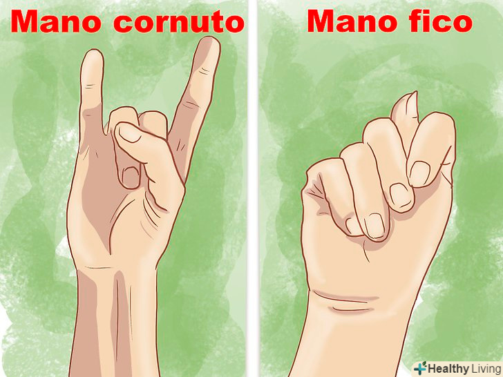 Спробуйте використовувати жести рук. деякі люди вважають, що певні жести допомагають захистити або навіть позбавляють від пристріту. Найвідоміший такий жест в російській і деяких інших культурах виглядає як стиснута в кулак рука з великим пальцем, просунутим між вказівним і середнім — інакше кажучи, це дулю. Замість кукиша можете спробувати інший жест під назвою «рогата рука» (mano cornuto), який являє собою звичайної кулак з відставленим в сторону вказівним пальцем і мізинцем. Тримайте руку пальцями вниз під час виконання цього жесту. .- Деякі жителі Італії носять з собою маленький червоний Ріг (corna) у вигляді прикраси на шию або в якості брелка для ключів. Його носять замість того, щоб показувати ці самі роги жестом. [7]