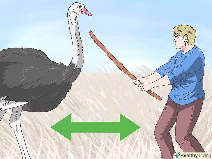 - Якщо ви сумніваєтеся в тому, що зможете дістатися до притулку, не намагайтеся зробити це. Страуси дуже швидко бігають, і птах вдарить вас в спину відразу ж, як тільки наздожене. [4]