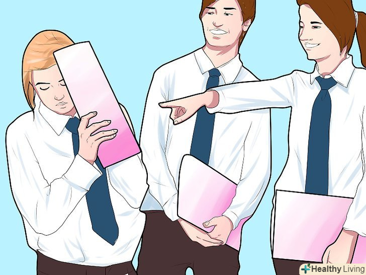 Поговоріть з учителем або начальником. якщо над вами знущаються, то не можна залишати цей факт в таємниці від людей, які здатні допомогти. Часто школярі бояться повідомляти про цькування, так як побоюються наслідків або не хочуть, щоб Однокласники вважали їх ябедами. Іноді людям здається, що нікому немає до них справи. Повідомлення про цькування-це перший крок, який допоможе вам припинити знущання і прийти в себе після емоційних потрясінь. [9]- Якщо у вас хороші відносини з кимось із вчителів, то розкажіть про свою проблему. Підійдіть до вчителя до або після уроку, щоб поговорити віч-на-віч, поки в класі нікого немає.