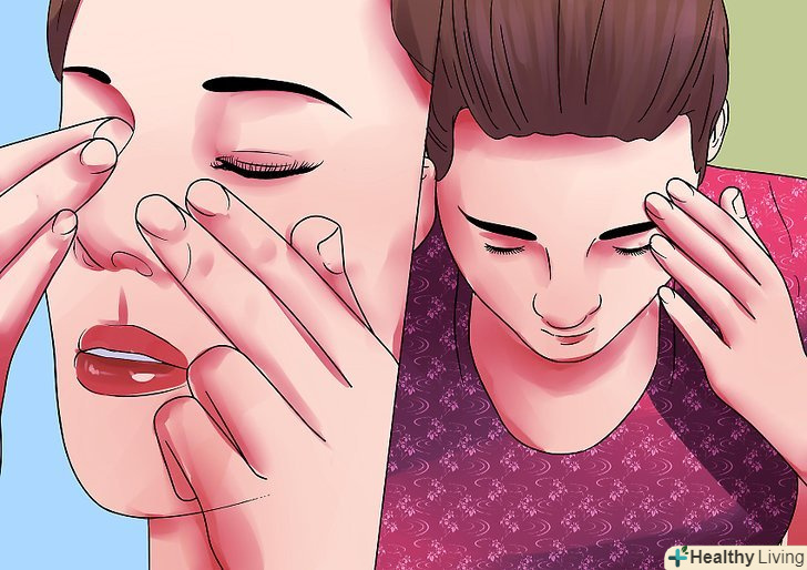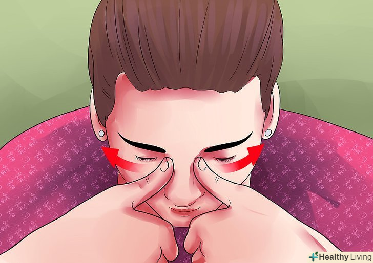 Масаж лобової пазухи носа. нанесіть на свої руки лосьйон або масажне масло, щоб пом'якшити рух своїх пальців по обличчю і прибрати тертя. Помістіть обидва вказівних пальця між бровами. Круговими рухами рухайте пальцями від брів до скронь.- Повторіть цей рух 10 разів.