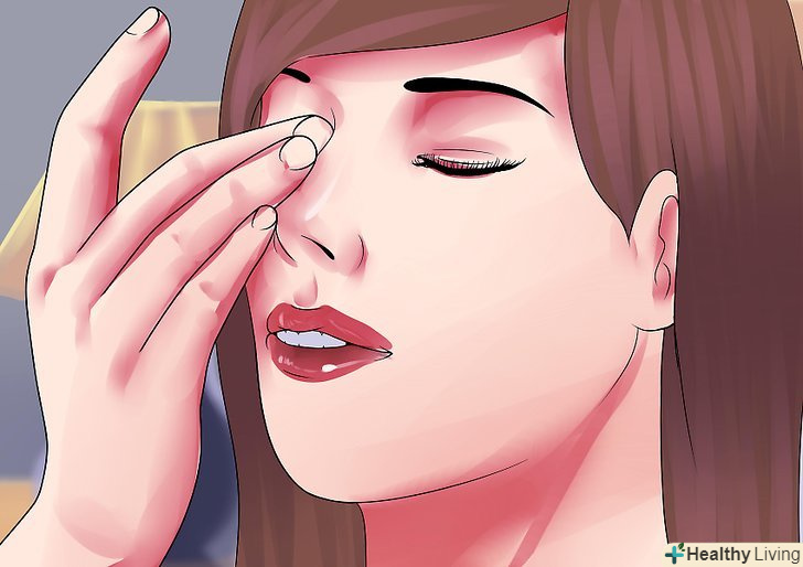 Масаж гратчастого лабіринту. нанесіть на свої руки невелику кількість лосьйону або масажного масла і гарненько їх розітріть, щоб розігріти. Вказівними пальцями тисніть уздовж перенісся. Рухаючись вгору у напрямку верхньої частини носа, зробіть вказівними пальцями невеликі кругові рухи поруч з куточками ока.- Але не варто торкатися до самих очей, інакше в них може потрапити масло.