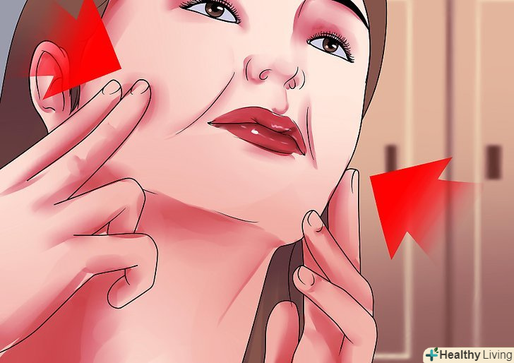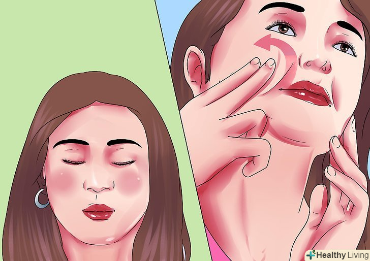 Натискайте на щоки протягом тривалого часу. сила впливу повинна знаходитися між приємним відчуттям і болючим. Натисніть пальцями на щоки і рухайте ними по колу протягом не менше трьох хвилин.- Припиніть масаж, Якщо ви відчуваєте біль.