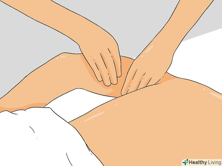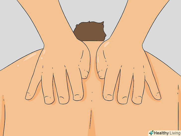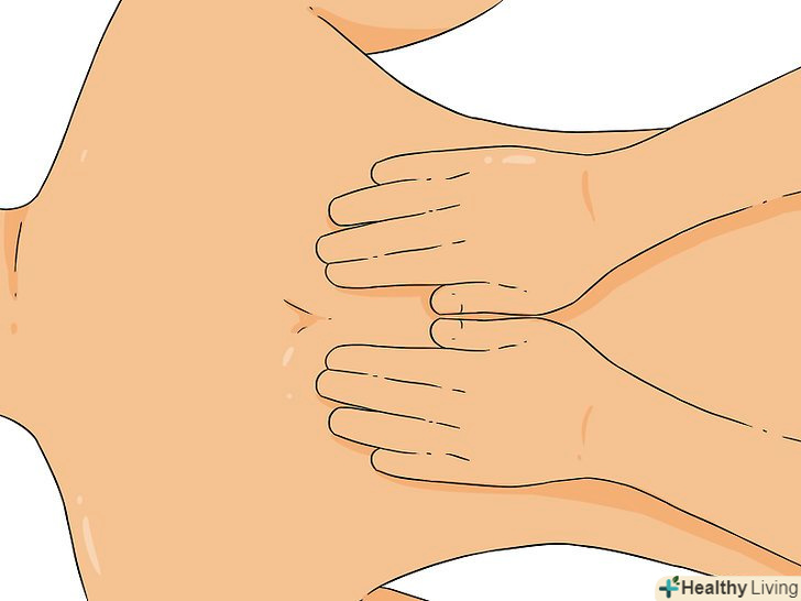 Помасажуйте бічною стороною руки вздовж нижньої частини спини. коли досягнете передпліччям нижньої частини спини, поверніть руку боком, щоб вона виявилася трохи вище сідниць. Ведіть рукою верх по спині уздовж зовнішньої частини і до плеча. В кінці проведіть руками вниз по плечу до грудей, пальці при цьому повинні бути спрямовані вниз. [8]
