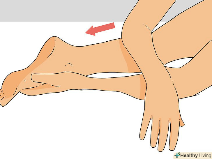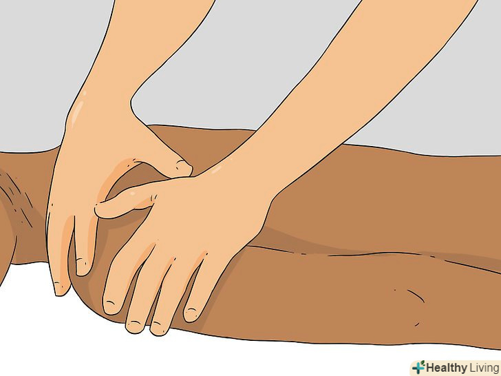 Використовуйте передпліччя, щоб натиснути на ногу. починаючи від задньої сторони щиколотки, рухайте передпліччям з збільшується тиском. Передпліччя повинно розташовуватися поперек ноги. Тисніть всім тілом. Рухайтеся вгору по задній поверхні ікри і стегна і на секунду зупиніться під сідницями. Плавним рухом обхопіть рукою стегно. [9]