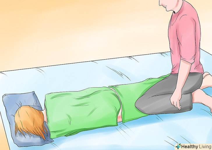 Займіть позиції:- Попросіть вашого партнера зручно розташуватися на пуховій ковдрі, лежачи обличчям вниз, з подушкою під його або її головою і під ногами. Накрийте його тіло двома великими рушниками.