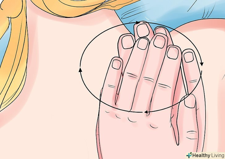 - Розташуйте пальці рук на грудних м'язах і масажуйте їх круговими рухами. (Пект.)