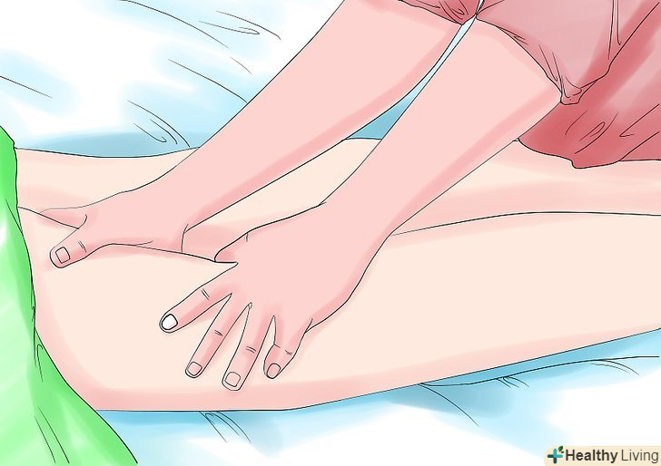 - Круговими рухами масажуйте підстави пальців ніг, вгору по ступні, навколо щиколоток і вгору по всій довжині ніг. Чотири пальці руки покладіть на зовнішню сторону великого м'яза, а великі пальці, покладіть на внутрішній стороні. Дотримуйтеся свого ритму. Ваші рухи повинні залишатися повільними і м'якими, продовжуйте далі.