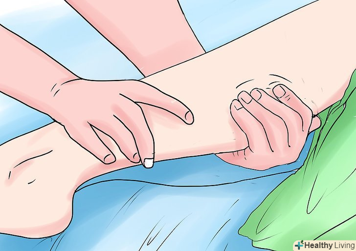 - Працюйте м'яко, масажуючи ноги круговими рухами. Натискайте своїми пальцями, при рухах вниз; при рухах вгору, своїми долонями. Відверніть рушник назад, щоб накрити його ноги і ступні.