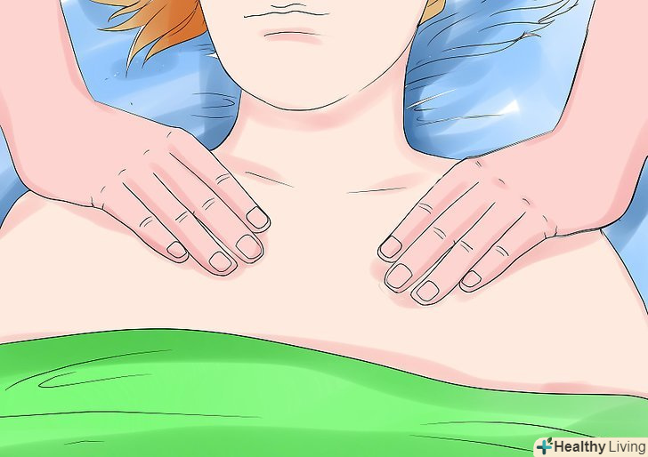 - Масажуйте навколо плечей і задню частину шиї. Робіть це за допомогою подушечок великих пальців, круговими рухами, злегка натискаючи з обох сторін хребта біля основи черепа. Ніколи не торкайтеся хребта: це викликає дискомфорт і існує ймовірність його пошкодження.