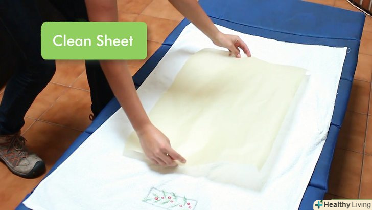 Постеліть простирадло на стіл або мат. оскільки людині потрібно буде майже повністю роздягнутися, чиста простирадло поверх мату або столу забезпечить йому як гігієну, так і комфорт. Крім того, вона вбере надлишки масла, не даючи йому розтікатися.