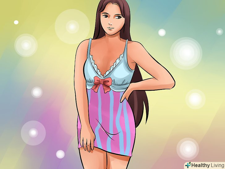 Використовуйте білизну з прозорих тканин. якщо ви не боїтеся показати крізь білизну трохи своєї шкіри, зверніть увагу на моделі з мереживними або прозорими вставками у верхній частині чашок. Вони додадуть вашої грудей більш цікавий вигляд і будуть виглядати приголомшливо. [16]- Прозора нічна сорочка дозволить трохи прикрити область живота, а ваша прекрасна шкіра буде добре видно крізь прозору тканину.