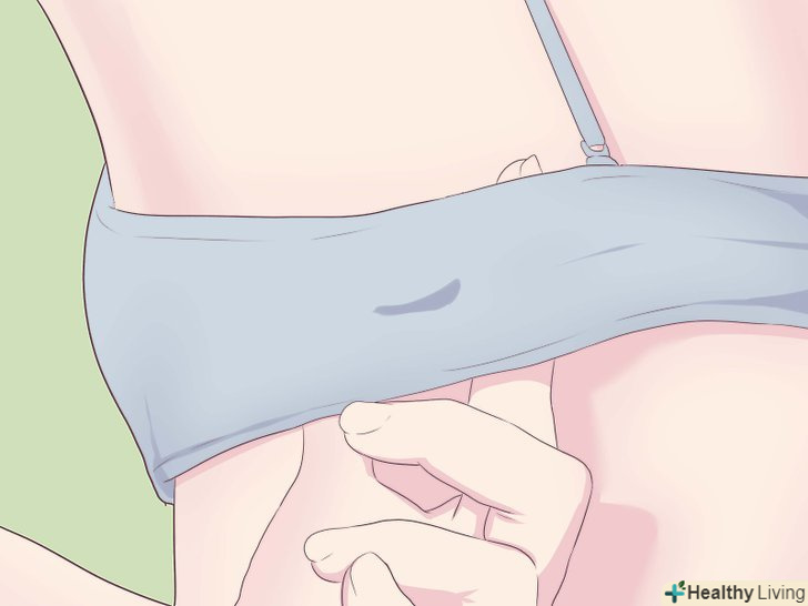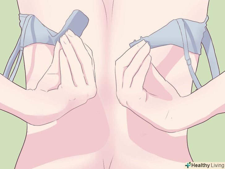 Закріпіть гачки бюстгальтера на талії, а потім підтягніть його вгору. підтягніть бюстгальтер вгору, наскільки це можливо, не ковзаючи по грудях.- Це дозволить підтримувати груди належним чином.
