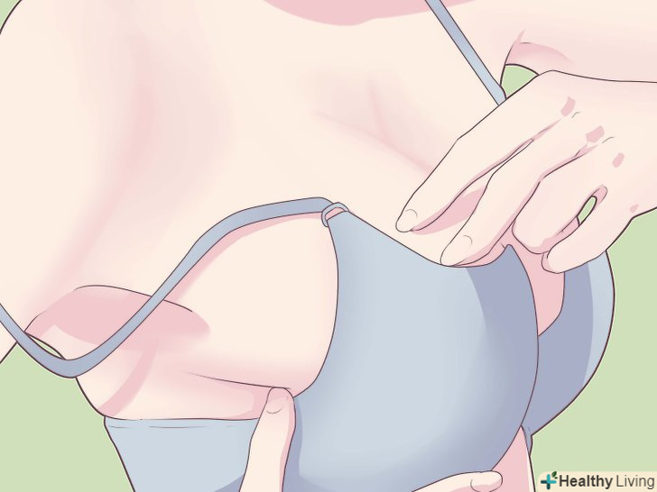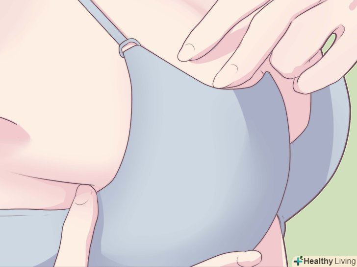 Нахиліться вперед і підтягніть груди. почніть з області пахв і покладіть груди в чашку.- Якщо ваш бюстгальтер ідеально вам підходить, груди повинні залишатися там, куди ви її поклали