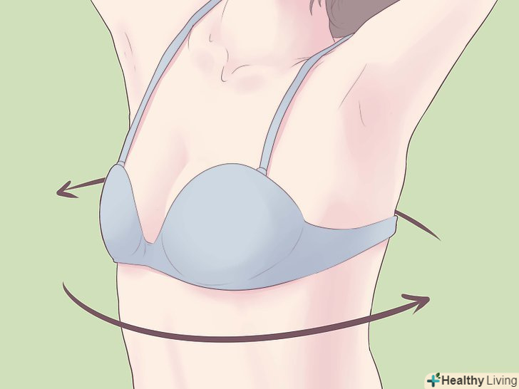 Завжди правильно носіть бюстгальтер. ваш розмір грудей буде змінюватися разом з іншими змінами в організмі.- Підбирайте правильний бюстгальтер кожен раз, коли набираєте або втрачаєте більш ніж 4,5 кг або якщо у вашому організмі відбуваються гормональні зміни, пов'язані з вагітністю або застосуванням гормональних препаратів. [2]