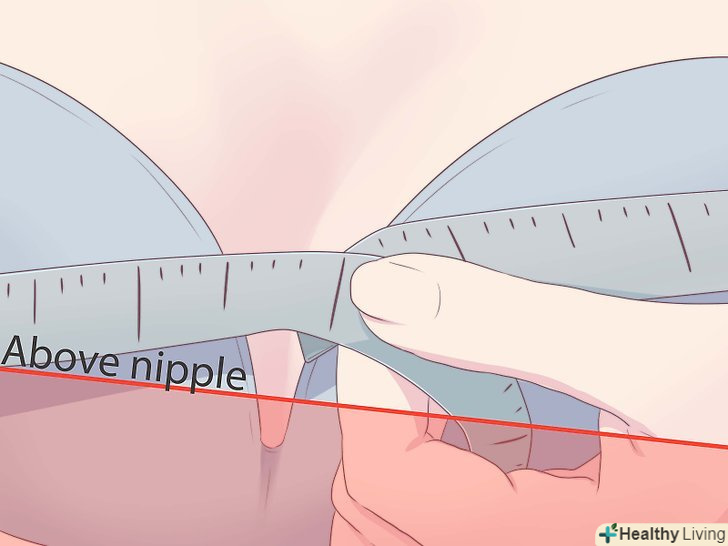 Обхопіть грудну клітку мірною стрічкою на самій виступаючої частини, на сосках.- Не затягуйте мірну стрічку занадто сильно.