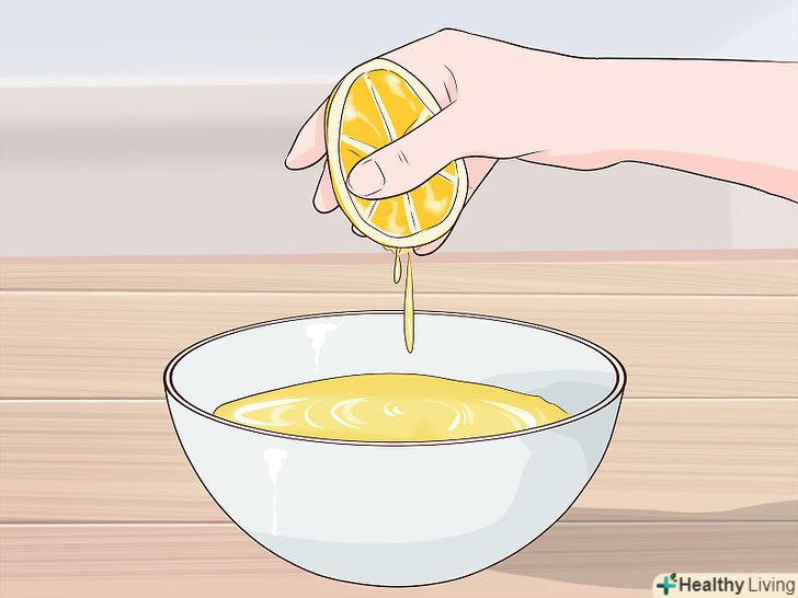 Втирайте суміш лимонного соку з водою в пляму. переконайтеся, що всі частини плями просочені соком. Для втирання лимонного соку в тканину можна взяти стару зубну щітку. [13]