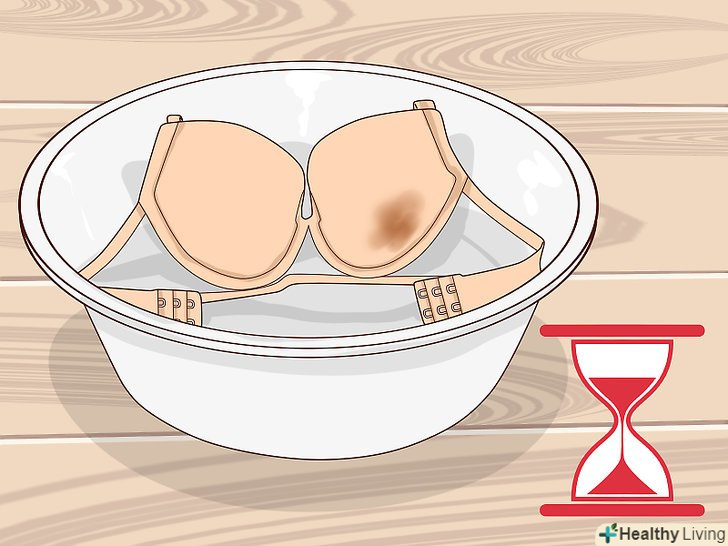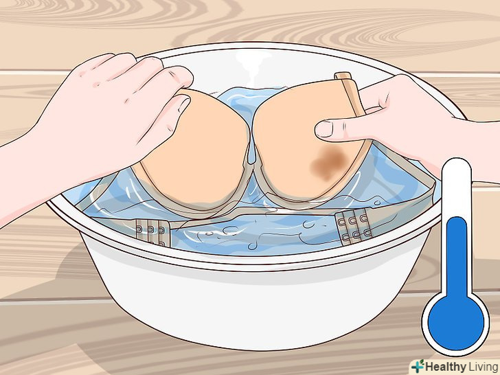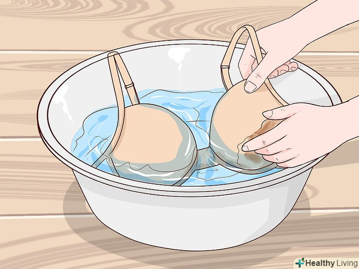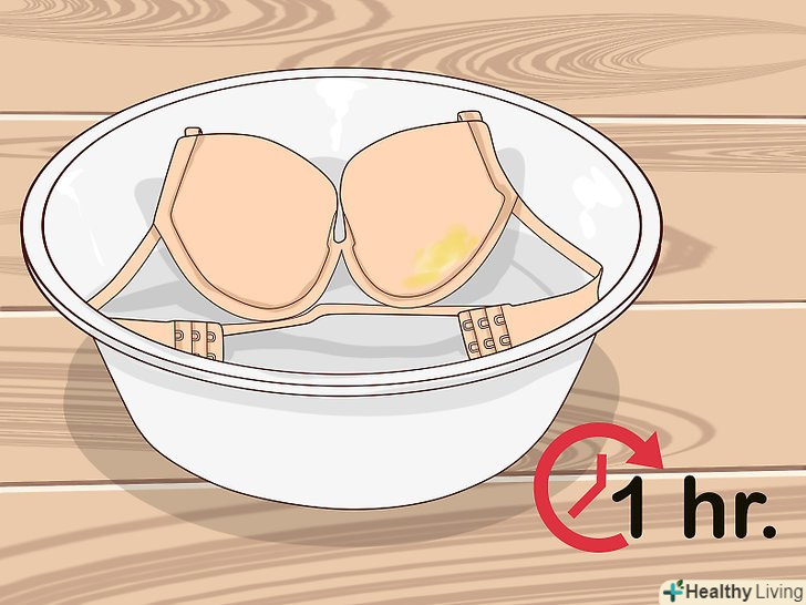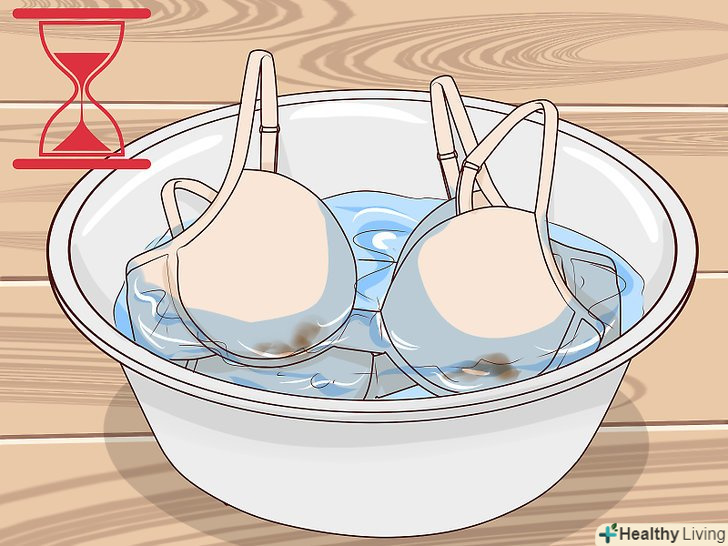 Покладіть у відро бюстгальтери. обережно розмішайте, щоб тканина бюстгальтерів повністю промокла. Залиште замочуватися приблизно на годину. [4]