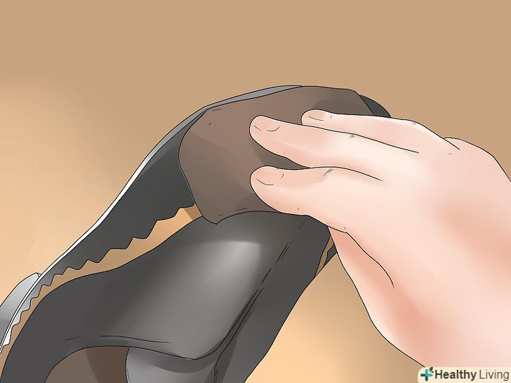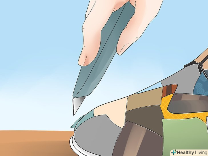 Приведіть внутрішні краї в порядок. хоча це робити не обов'язково, можна приховати нерівності по внутрішньому краю взуття. Нерівності не помітні при носінні взуття, але їх буде видно, коли ви знімете туфлі. [6]- Почніть обрізати будь-які нерівності на взутті.