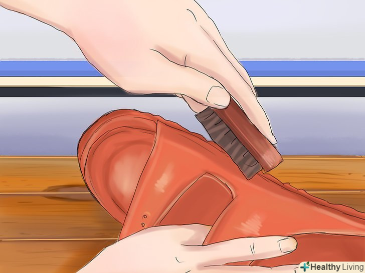 Видаліть всі забруднення. перш ніж мити взуття водою або милом, видаліть будь-які забруднення, які можна зішкребти з поверхні взуття. Використовуйте для цього щітку з жорстким ворсом. [7]