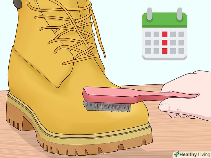 Не забувайте регулярно очищати черевики від дрібних забруднень. підтримуйте черевики в чистоті, очищаючи їх від забруднень раз на тиждень. Це особливо важливо робити, якщо ви носите це взуття щодня, так як бруд поступово буде накопичуватися на черевиках. Щотижня чистіть взуття, що дозволить вам на тривалий час зберегти її свіжий зовнішній вигляд.