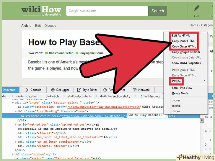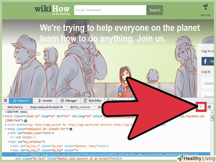 Виберіть інший елемент. відкривши підвікно функції «дослідити елемент", ви можете запросто вибрати інший елемент одним з трьох способів:- Наведіть вказівник миші на рядок HTML коду, щоб виділити відповідний елемент (в Firefox 34+). [2] клацніть по HTML коду, щоб вибрати цей елемент.