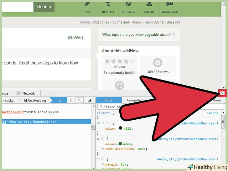 Навігація по HTML коду. клацніть по будь-якій області в підвікні з HTML кодом. Використовуйте клавіші зі стрілками (на клавіатурі), щоб переміщатися по коду (в Firefox 39+). [3] це корисно в тому випадку, якщо елемент досить маленький.- HTML код, представлений сірим шрифтом, відноситься до елементів, які не відображаються на сторінці. Наприклад, коментарі, вузли (такі як Lt; headgt;) і елементи, приховані за допомогою CSS. [4]