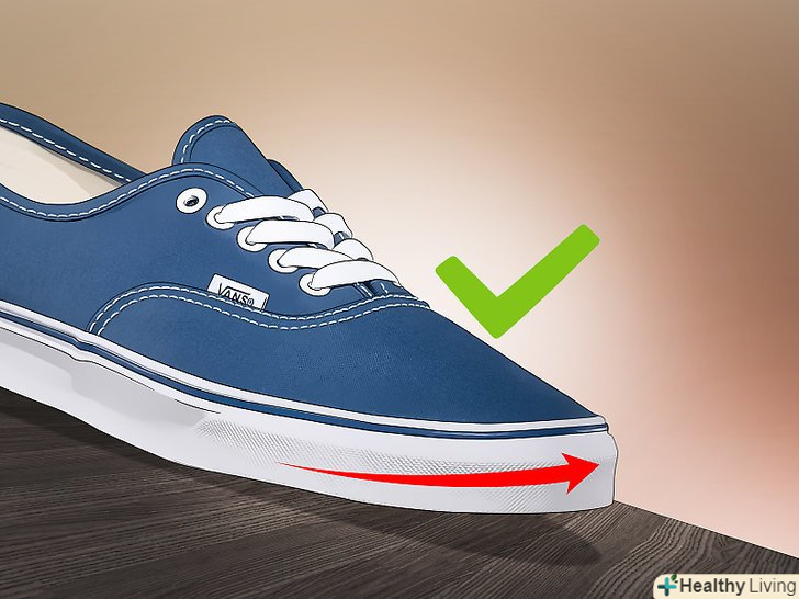 Перевірте кут носової частини. взуття повинна бути злегка загнута вгору, надаючи шкарпеткам правильний вигляд. Якщо низ взуття гладкий, швидше за все, це підробка. [14]
