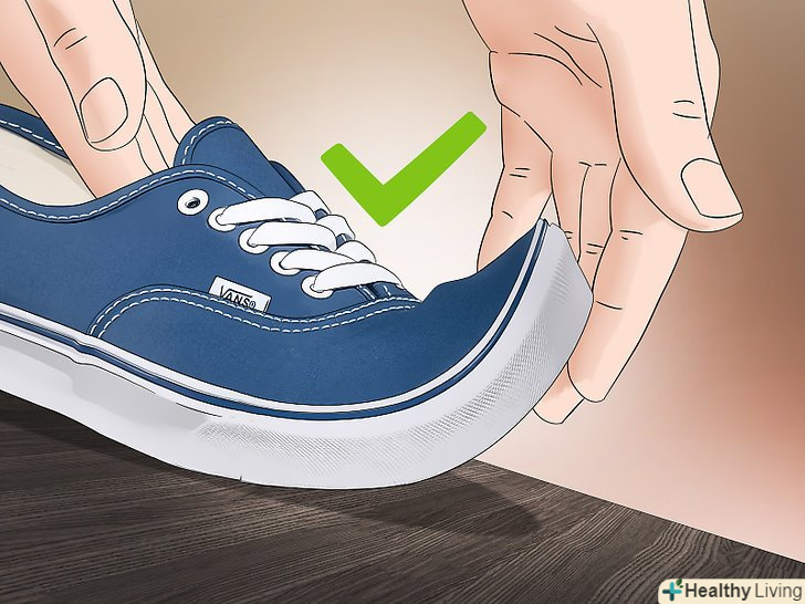 Зігніть носову частину. вона повинна добре гнутися. У вас повинно вийти зігнути носок і п'яту так, щоб вони стикнулися. Якщо взуття туге, значить, це не оригінал. [15]