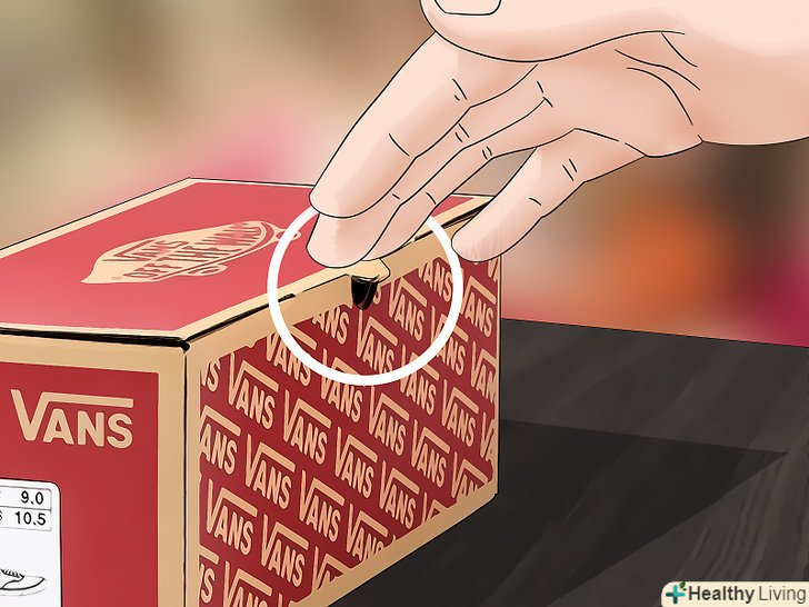 Подивіться, чи правильно закривається коробка. у взуття фірми Vans навіть коробки добре зроблені. На них повинен бути закривається механізм. Язичок на верхній кришці поміщається всередину коробки і утримує її закритою.- У дешевих підробок часто немає закривається механізму. Верхня частина покриває нижню, але нічого її не закріплює. [5]