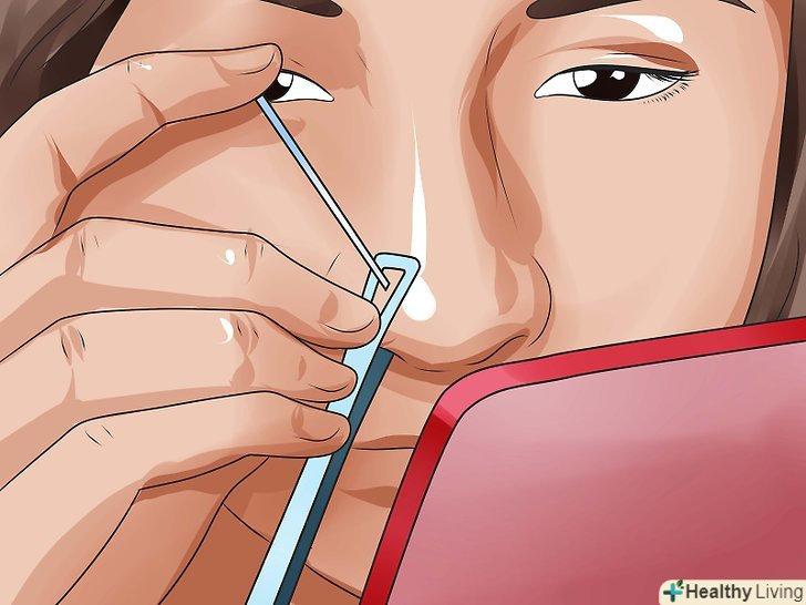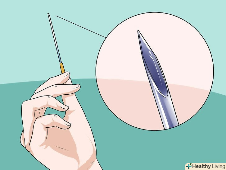 Приготуйте голку. голка обов'язково повинна бути новою і в цілій упаковці. Ви повинні бути впевнені, що до вас її ніхто не використовував. Найефективніше використовувати порожнисту голку невеликого діаметру: 20g (0,9 мм) або 18g (1,0 мм). Діаметр отвору в носі повинен відповідати діаметру обраного Вами прикраси. [4] зробивши всі приготування, дістаньте голку з упаковки. Перш ніж протикати нею шкіру, переконайтеся, що вона стерильна.- В принципі, пірсинг можна зробити англійською шпилькою, канцелярською кнопкою, сережкою або швейною голкою. Але враховуйте, що самі ви можете не досить добре простерилізувати обраний інструмент. Відповідно, ризик інфікування при цьому набагато вище. Якщо ж інструмент буде недостатньо гострим, ви можете пошкодити тканини, а сам процес буде набагато складніше і болючіше.