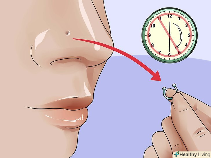 Не виймайте прикрасу надовго. якщо ви будете виймати його довше, ніж на кілька годин, то прокол може затягнутися. Шкіра ніздрів заживає дуже швидко, і, можливо, доведеться проколювати її знову, якщо не вдасться вставити гвоздик. Не міняйте гвоздик щонайменше три місяці.