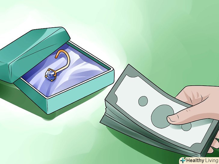 Купуйте прикрасу. ви можете вибрати «гвоздик», кільце або штангу. Пошукайте що-небудь підходяще в ювелірних магазинах, тату-салонах або сувенірних магазинах. Якщо точно знаєте, чого хочете, то пошукайте в Інтернеті. Важливо правильно підібрати розмір, довжину і товщину виробу. Для початку краще вибирати кільце або сережку невеликого розміру. Прикраса обов'язково має бути новим і стерильним. Неприпустимо вставляти раніше використані прикраси.- Пам'ятайте, що на певні метали може бути алергія. Найчастіше алергія буває на нікель, але може бути і на золото, хром або будь-який інший метал. Алергія проявляється у вигляді висипу. [2] якщо, зробивши Пірсинг, ви помітили, що шкіра потріскалася або на ній з'явилися бульбашки, потрібно відразу ж витягнути прикраса і звернутися до лікаря.