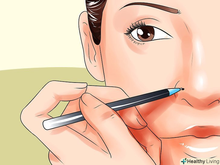 Зробіть позначку на носі. Маркером намалюйте на шкірі маленьку крапку в тому місці, де ви хочете, щоб був «гвоздик». Подивіться в дзеркало і переконайтеся, що все як треба. Якщо відмітка вийшла занадто низько або занадто високо, зітріть її і намалюйте нову. Не лінуйтеся перемальовувати до тих пір, поки не досягнете ідеального результату.