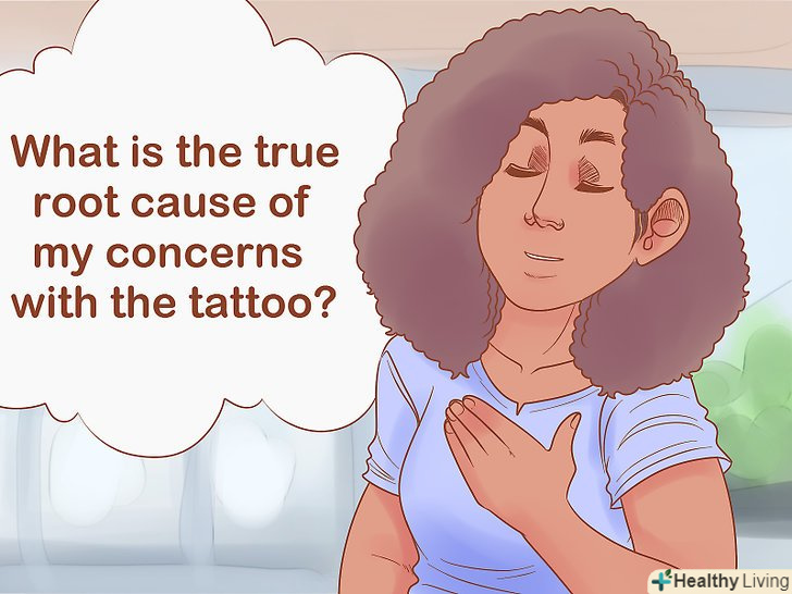 Відкрийте позитивні аспекти татуювання. Вам буде простіше примиритися з татуюванням, якщо вийде виявити позитивні моменти. Наприклад, татуювання маленька і непримітна, тому ви зможете швидко звикнути. Можливо, вона знаходиться на такій ділянці тіла, який майже завжди прихований одягом. Знайдіть позитивні моменти, які допоможуть вам примиритися з татуюванням.- З часом ви напевно звикнете до неї.