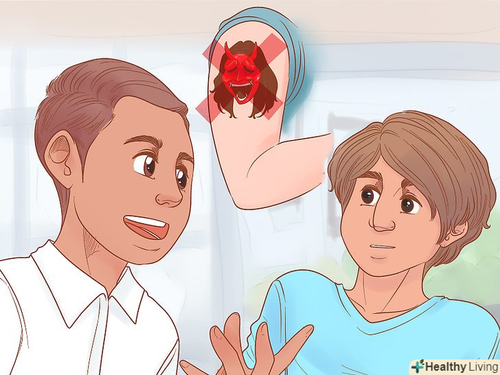 Запитайте партнера про значення татуювання. Часто люди роблять татуювання, які мають якусь важливість або символічне значення. Запитайте партнера про татуювання. Це допоможе вам краще зрозуміти суть і примиритися з нею. [1]- Наприклад, татуювання у вигляді імені, ініціалів або дати може символізувати смерть друга або родича.