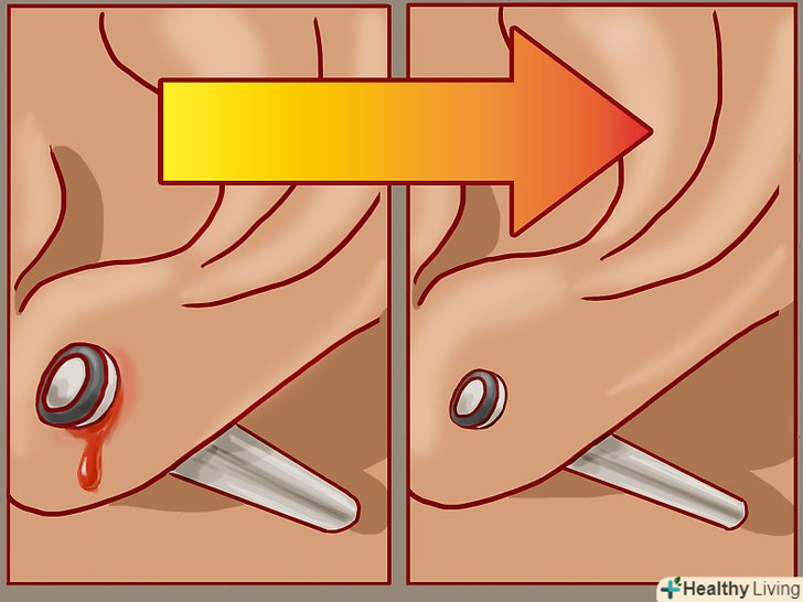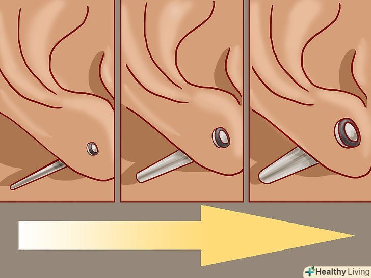 - Ніколи не пропускайте розмір! Іноді, особливо коли ви не відчуваєте болю, ви можете втратити терпіння і спробувати прискорити процес, вставивши сережку більшого розміру. Однак це збільшує шанси сильного пошкодження вух. Навіть якщо ви впевнені, що можете пропустити розмір, не рекомендуємо робити це. [8]