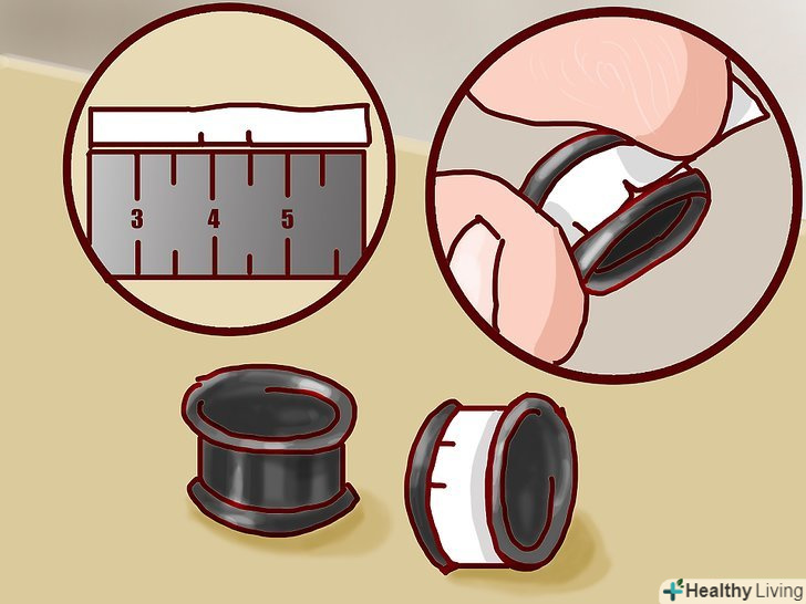Використовуйте обмотки для поступового розтягування. якщо ви хочете розтягувати мочки вух поступово, то використовуйте обмотки тефлоновою стрічкою. Вони дозволяють розтягувати вуха Пірсинг поступово, а це означає менше хворобливих відчуттів, оскільки в порівнянні з конусами збільшення діаметра отвору буде відбуватися меншими кроками.- Для цього методу розтягування вушних мочок зазвичай використовують тефлонову стрічку. Стрічку необхідно обернути навколо прикраси в тій його частині, яка вставляється в вухо. Розтягуйте вуха поступово, періодично намотуючи по одному або по два шари стрічки. Робіть так до тих пір, поки не дійдете до бажаного діаметра. [4]