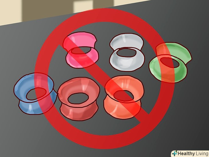 Не використовуйте прикраси з силікону та інших матеріалів. До тих пір, поки ваші вуха не будуть розтягнуті до бажаного діаметра, і повністю не заживуть, ви не повинні носити силіконові пробки. При використанні під час розтягування, силіконові прикраси можуть розривати тканини. Крім цього такі прикраси збільшують ризик розвитку інфекції. Тунелі часто бувають занадто великими, а тому викликають хворобливі відчуття і травмують мочку вуха. [6]