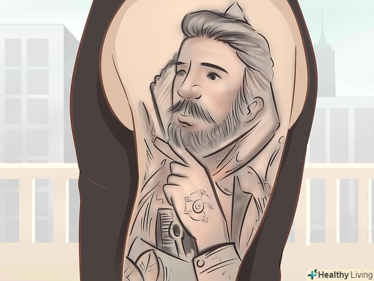 Зробіть портретну татуювання. портретні татуювання — прекрасний спосіб відобразити кохану людину, щоб висловити свою повагу йому. Знайдіть художника-татуювальника, який спеціалізується на портретах, домовтеся про консультації з ним, щоб обговорити те, що ви хочете набити. Обов'язково візьміть з собою хорошу чітку фотографію, щоб у художника була можливість детально передати зображення. [10] Зробіть портретну татуювання. портретні татуювання — прекрасний спосіб відобразити кохану людину, щоб висловити свою повагу йому. Знайдіть художника-татуювальника, який спеціалізується на портретах, домовтеся про консультації з ним, щоб обговорити те, що ви хочете набити. Обов'язково візьміть з собою хорошу чітку фотографію, щоб у художника була можливість детально передати зображення. [10]- Портретні татуювання-хороший спосіб вшанувати кумира або улюблену знаменитість.
