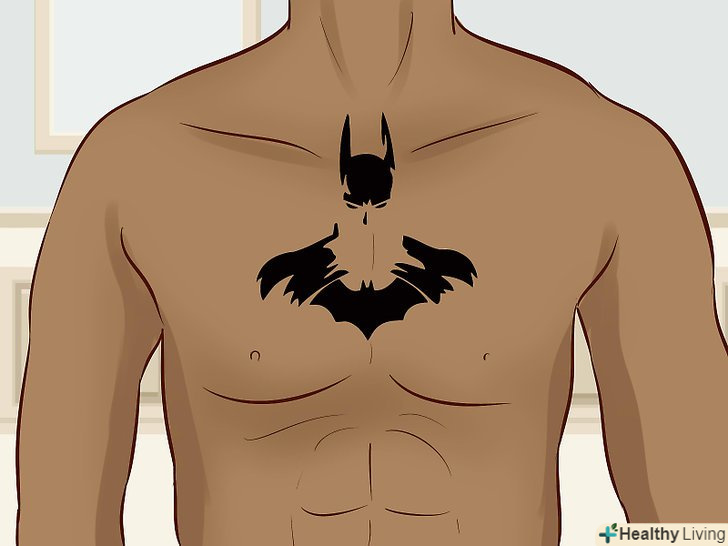 Зробіть татуювання, надихнувшись улюбленим фільмом, телешоу або коміксом. висловіть вдячність за улюблений елемент поп-культури, виберіть для своєї татуювання ідею з якогось фільму або серіалу. Але варто вибрати саме те, чим ви вже давно захоплюєтеся, а також будете захоплюватися ще довгий час. Принесіть зображення з логотипом або улюбленим персонажем і покажіть його татуювальнику. Обговоріть з ним можливі ідеї. [13] Зробіть татуювання, надихнувшись улюбленим фільмом, телешоу або коміксом. висловіть вдячність за улюблений елемент поп-культури, виберіть для своєї татуювання ідею з якогось фільму або серіалу. Але варто вибрати саме те, чим ви вже давно захоплюєтеся, а також будете захоплюватися ще довгий час. Принесіть зображення з логотипом або улюбленим персонажем і покажіть його татуювальнику. Обговоріть з ним можливі ідеї. [13]- Наприклад, якщо ви просто обожнюєте комікси, можна вибрати татуювання з Бетменом.