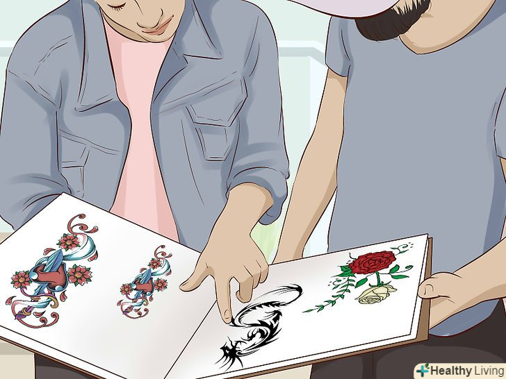 Сходіть на консультацію до художника-татуювальника. Якщо ви знайдете татуювальника, чиї роботи вам сподобаються, проконсультуйтеся з ним і обговоріть можливий ескіз. Принесіть з собою малюнки і начерки, які показали б художнику, що вам потрібно. Обговоріть розмір татуювання, розкажіть, де б ви хотіли її набити, щоб художник зміг створити для вас відповідний ескіз. [2] Сходіть на консультацію до художника-татуювальника. Якщо ви знайдете татуювальника, чиї роботи вам сподобаються, проконсультуйтеся з ним і обговоріть можливий ескіз. Принесіть з собою малюнки і начерки, які показали б художнику, що вам потрібно. Обговоріть розмір татуювання, розкажіть, де б ви хотіли її набити, щоб художник зміг створити для вас відповідний ескіз. [2]