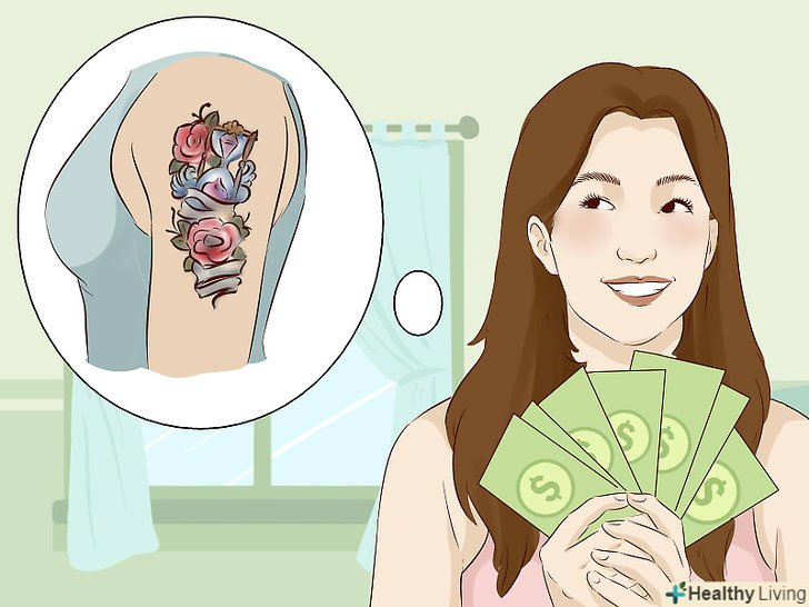 Подумайте, скільки збираєтеся витратити на татуювання. перш ніж спілкуватися з татуювальником, необхідно спланувати, скільки ви готові за це заплатити. Хороші художники-татуювальники можуть брати за свою роботу від 8-10 тисяч (в залежності від розміру татуювання). Висловлюйтеся ясно-скажіть художнику, скільки ви збираєтеся витратити, а також дізнайтеся, скільки буде коштувати татуювання, яку б ви хотіли. [6] Подумайте, скільки збираєтеся витратити на татуювання. перш ніж спілкуватися з татуювальником, необхідно спланувати, скільки ви готові за це заплатити. Хороші художники-татуювальники можуть брати за свою роботу від 8-10 тисяч (в залежності від розміру татуювання). Висловлюйтеся ясно-скажіть художнику, скільки ви збираєтеся витратити, а також дізнайтеся, скільки буде коштувати татуювання, яку б ви хотіли. [6]- Кінцева вартість може на 20% відрізнятися від тієї, що скаже вам художник. [7]
