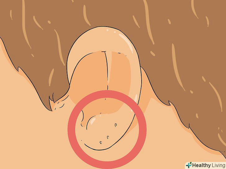 Знайдіть місце початкового проколу. можливо, ви вже знайшли сліди отвору, коли перевіряли стан мочок. Якщо ні, подивіться в дзеркало і знайдіть місця проколу. Отвори могли зарости повністю, і тоді місць проколу не буде видно. У цьому випадку просто виберіть нове місце для отворів. Намітьте маркером місця проколу. [10]- Можна відзначити інше місце для проколу, навіть якщо старі отвори видно.