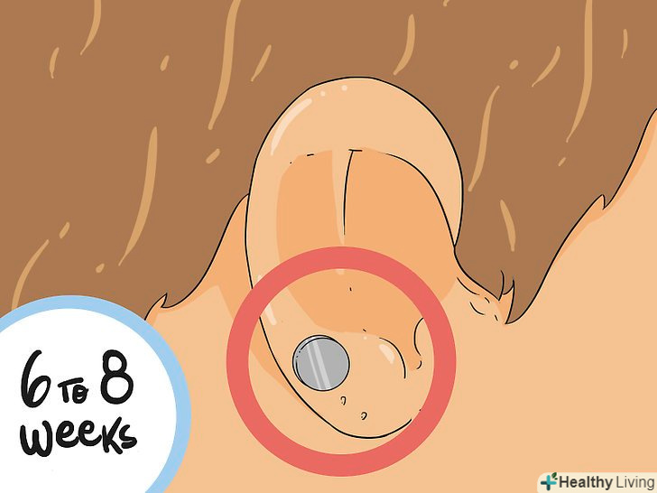 Не знімайте сережки протягом 6-8 тижнів. проколи можуть заростати, якщо зняти сережки занадто рано. Постарайтеся проносити сережки не менше 6-8 тижнів. Потім можна буде замінити гвоздики на інші сережки. [17]- Можна носити гвоздики довше.
