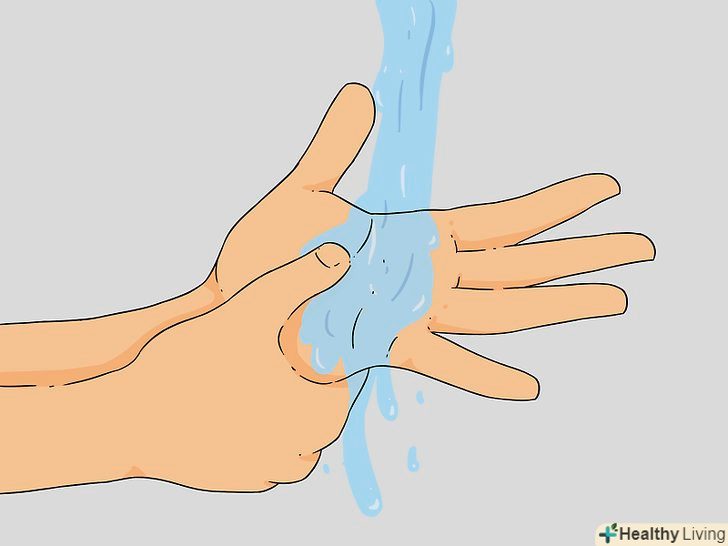Помийте руки. бактерії з брудних рук можуть потрапити в ранку і викликати інфекцію. Помийте руки під теплою водою з антибактеріальним милом. Потім витріть руки чистим рушником. В кінці нанесіть на шкіру антибактеріальний гель, щоб руки були максимально чистими. [7]