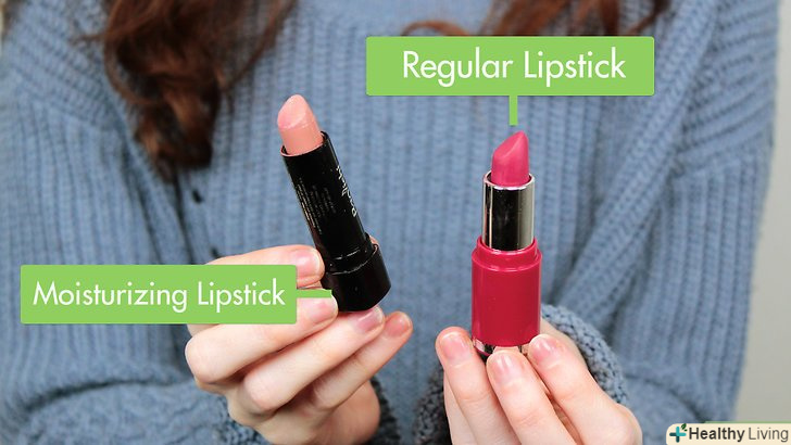 Віддайте перевагу зволожуючою, а не звичайної помаді. Помада дозволяє надати губам колір, але деякі її види можуть сушити губи. Якщо Ви користуєтеся помадою, зупиніть свій вибір на зволожуючих її різновидах. Для більш якісного зволоження і розгладження шкіри губ спочатку наносите під помаду бальзам.- Відмовтеся від блиску для губ-він часто викликає сухість. Якщо вам необхідно скористатися блиском, наносите його поверх бальзаму для губ. [10]