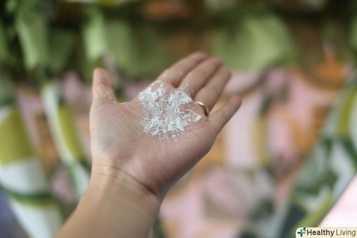 Наносите на область пахв дитячу присипку. дитяча присипка (тальк) добре поглинає вологу, тому допомагає запобігти появі на одязі мокрих плям. Звичайно, тальк не настільки ефективний, як дезодорант-антиперспірант, але зате він не залишає плям на одязі.- Порошок тальку не можна вдихати і використовувати жінкам в області геніталій, оскільки була виявлена його зв'язок з виникненням онкології. [5]
